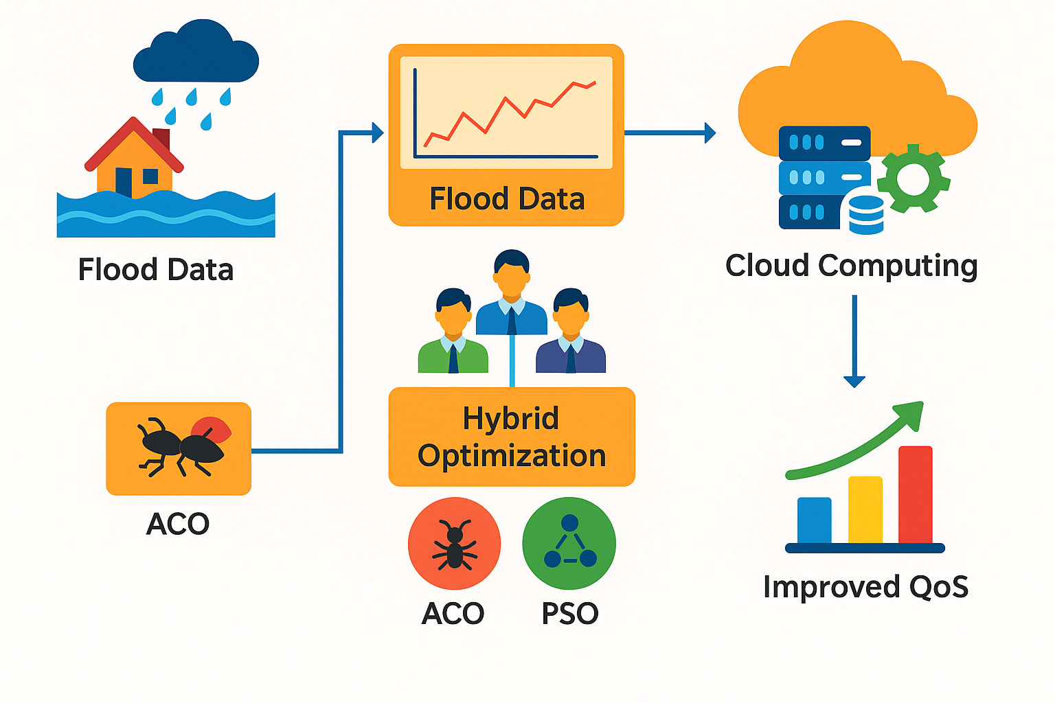 The field of natural and environmental sciences garners significant attention due to its reliance on precise, real-time predictions. Among the various environmental hazards, flood events caused by intense rainfall represent a recurring threat, particularly in the eastern regions of India. This study focuses on where frequent flooding has affected numerous districts, resulting in substantial loss of life and damage to property. Cloud computing is a technology that enables the provision of several types of computer services over the internet. They are often maintained by a cloud services provider (CSP) at a remote data center for maintaining the flood based data. While cloud computing offers numerous advantages, there are also some disadvantages and challenges associated with services delivered to cloud users affecting the QoS. Integrating services from multiple vendors can be challenging because each cloud provider has its own set of services andit may be a challenge for some organizations to tailor cloud services to their specific business demands. To overcome such issues related to service delivery, a Multi agent-based hybrid algorithm combining both ACO and PSO has been proposed which enhances the QoS by finding an optimum execution time. A cloud platform for flood prediction has been created in which agents interact with each other to optimally cater to the user's requests. An ablation study is done with flood data signals for measuring multi-agent functionality in cloud using the proposed Hybrid ACO and PSO algorithms. Experimental results shows effective execution of user tasks using agent with an improvement of 50% than that of existing algorithms.
