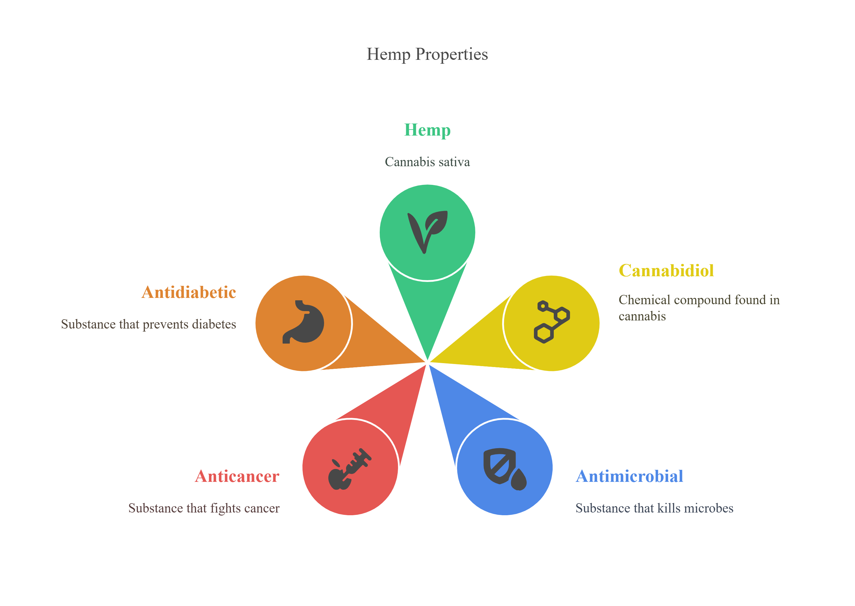 Hemp (Cannabis sativa L.) is a medicinally important species that grows worldwide in a wide range of climatic conditions. Hemp contains various bioactive compounds/phytochemicals such as terpenes, flavonoids, fatty acids, and sterols, which enhance its pharmacological properties. Hemp-based medicine has been found effective against post-traumatic stress disorder, cancer, AIDS, sclerosis, anxiety, depression, inflammation, epilepsy, Tourette syndrome, and sleep disorders. In the current review of literature, approximately 100 bioactive chemicals were identified from research papers that have been published. All recovered compounds were assessed independently for their toxicity, and 18 of them were found to be exceptionally bioactive and had no harmful effects. Furthermore, this overview of literature will reveal LD50 values for the extremely bioactive compound, which could potentially be implemented later on as potential therapeutic agents against cancer receptor proteins, cardiovascular disease, antidiabetic, respiratory diseases, and gastro-intestinal problems through an in-silico approach. The present review aims to explore the hemp bioactive metabolites which serve as a potential candidate for treating number of serious diseases.