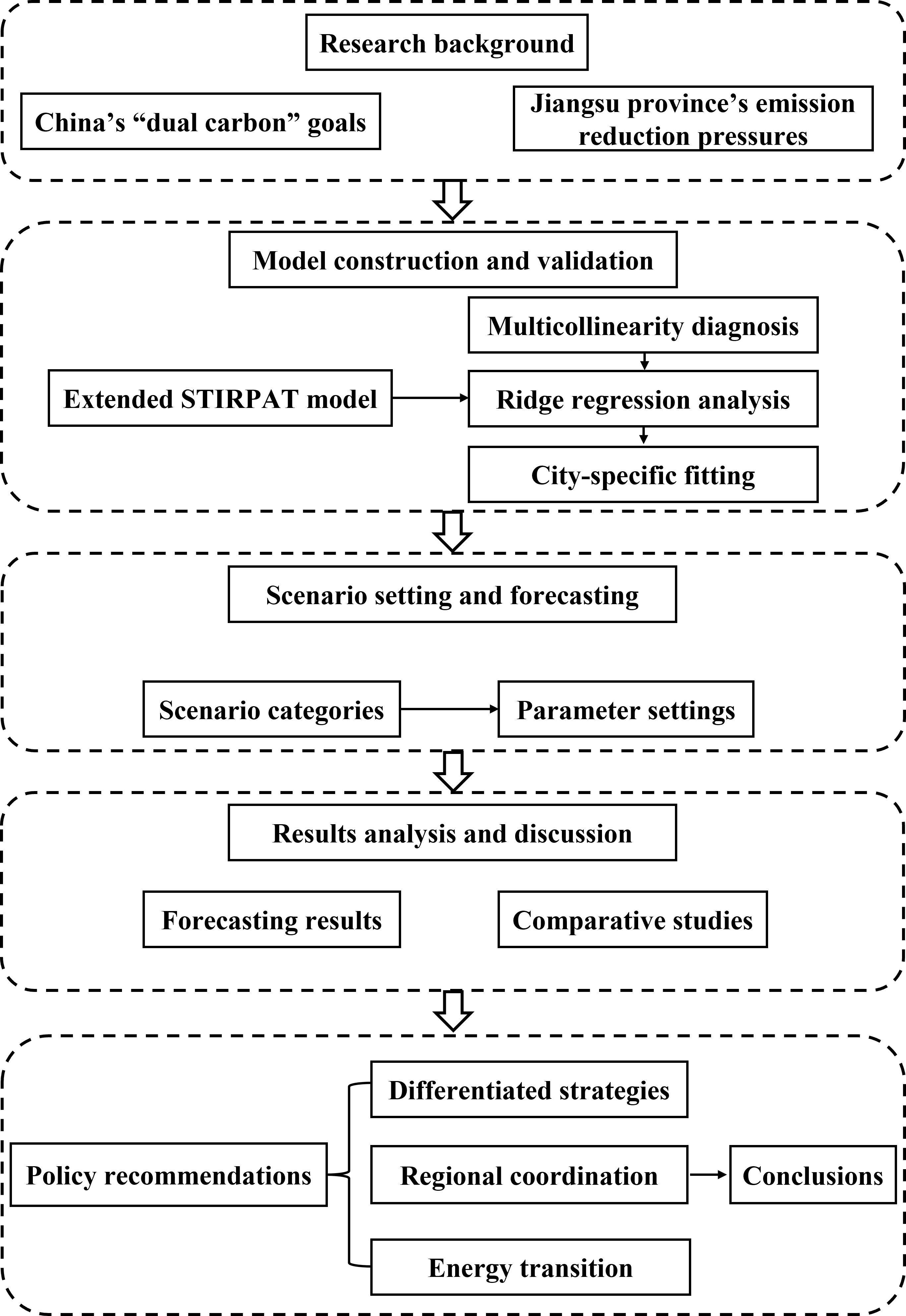 Carbon emissions have consistently been a focal point of attention for the Chinese government. As one of the key drivers of China's economy, Jiangsu province plays a pivotal role in achieving the dual carbon goals. This study is grounded in data from Jiangsu province spanning 2003 to 2022 and constructs an extended STIRPAT model to delve into the impact of factors such as population, GDP per capita, urbanization rate, industrial structure, energy consumption intensity, and per capita energy consumption on carbon emissions. Additionally, this paper forecasts the future carbon emission trends of the 13 cities in Jiangsu province under different scenarios and explores the possibility of the province reaching its carbon peak.The findings reveal that cities exhibit varying degrees of sensitivity to influencing factors. Under the baseline scenario, cities like Wuxi and Zhenjiang are expected to achieve carbon peaking by 2030, whereas in more economically developed areas such as Nanjing and Suzhou, the timing of carbon peak may be relatively delayed. In the green development scenario, all cities across the province are projected to reach carbon peak ahead of schedule. Moreover, scenarios of industrial structure optimization and energy conservation are also found to accelerate the process of carbon peaking. However, under the extensive development scenario, only a few cities are likely to achieve carbon peaking before 2030. Accordingly, Jiangsu province should formulate differentiated carbon peak targets based on the specific circumstances of each city and strengthen inter-regional coordinated development. Simultaneously, the government needs to adopt more robust policy measures to facilitate the optimization and adjustment of the energy structure, the upgrading of industrial structures, and the enhancement of energy efficiency, thereby ensuring the successful realization of the province's carbon peak goals.