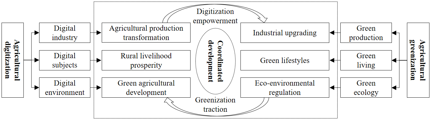 The coordinated development of agricultural digitization (AD) and agricultural greenization (AG) is a vital initiative for achieving high-quality agricultural development and rural revitalization. By establishing a theoretical framework for their coordinated development and measuring the levels of AD and AG in China from 2013 to 2022, this study employs the CCD model, dynamic panel model, and MGWR model to analyze the spatiotemporal characteristics and driving mechanisms of their coordinated development. The findings indicate: (1) Both AD and AG levels show steady growth, with a spatial pattern generally characterized by a sequential decline from eastern to central and western regions. (2) The CCD between the two continues to strengthen but remains in a marginally coordinated stage overall, far from achieving high-quality coordinated development. Spatial disparities in coupling coordination are pronounced, exhibiting a "multi-core" radiating regional pattern and an overarching trend of "eastern regions leading, while central and western regions strive to catch up." (3) A mutually reinforcing relationship exists between the two, with the pulling effect of AG being stronger than the enabling effect of AD. (4) Various driving mechanisms positively contribute to promoting the coordinated development of the two, with their influence demonstrating marked spatial heterogeneity.