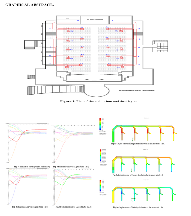 Heating, Ventilation, and Air Conditioning (HVAC) systems play a vital role in maintaining indoor environmental quality, occupant health, and thermal comfort in large public spaces such as auditoriums. However, inadequately designed duct networks often result in uneven airflow, increased energy consumption, and higher operational costs, thereby contributing to greater environmental impact. In this study, cooling load calculations were performed based on occupancy and seating arrangements, followed by diffuser placement and duct network design. Duct sizing was carried out using the Equal Friction Method, and pressure variations across ducts with different aspect ratios were numerically analysed. Three-dimensional models of the duct system were developed using SolidWorks, and Computational Fluid Dynamics (CFD) simulations using Wizard software were conducted to evaluate airflow distribution, velocity profiles, and pressure characteristics. The results show that duct sizing optimized through the Equal Friction Method produces uniform air distribution without the need for additional flow-regulating devices, thereby reducing pressure losses and improving energy efficiency. This leads to enhanced HVAC system performance and improved indoor air quality. This study uniquely integrates the Equal Friction Method with CFD analysis by using the analytical method for initial duct sizing and the CFD model to validate and optimize airflow distribution and thermal comfort within the auditorium. This combined approach advances existing HVAC design practices by providing a more accurate, cost-effective, and performance-oriented framework compared to other methods, while also supporting sustainable and environmentally responsible building design.