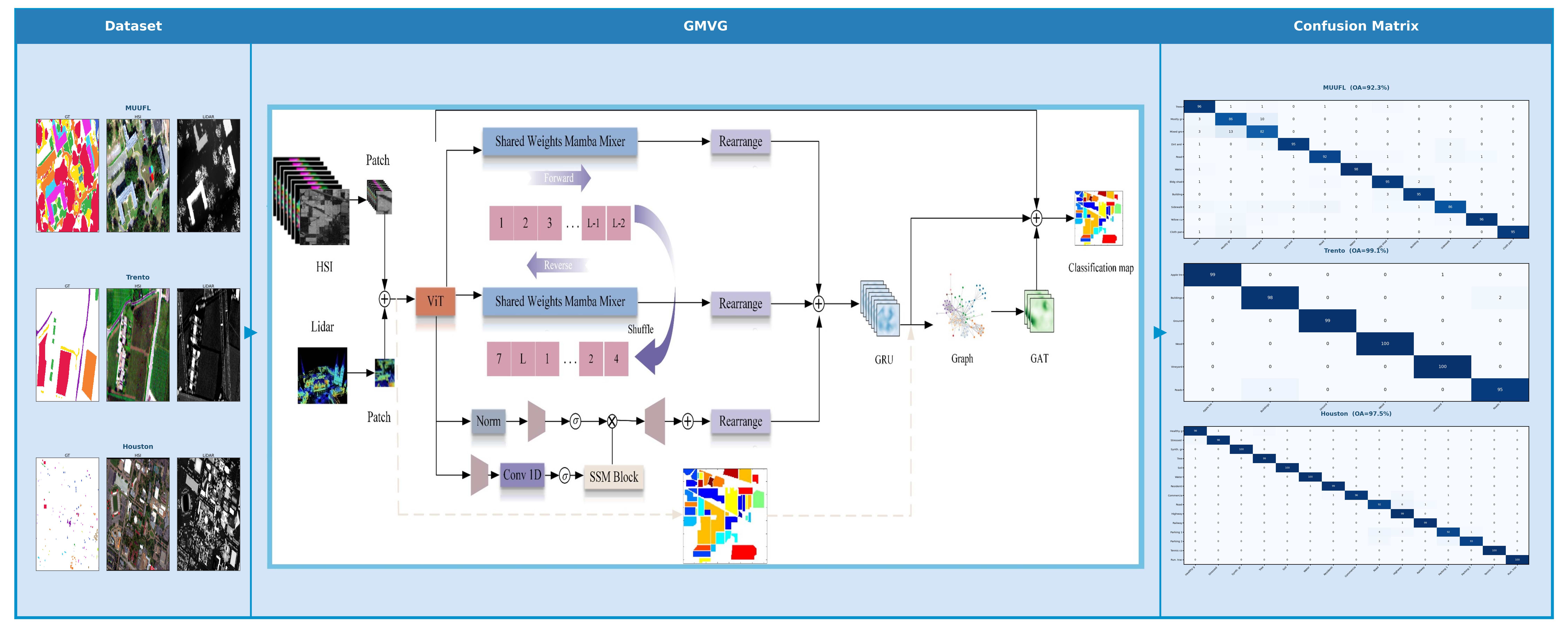 In recent years, the rapid development of geospatial intelligence and remote sensing technologies has brought new ways to study land cover. By combining different data sources, such as hyperspectral and LiDAR data, the AI model's land cover classification accuracy reaches new heights. Yet, due to the difference in data extraction and processing, the fusion of two data types is challenging. This paper presents a novel model that combines two input data sources, hyperspectral and LiDAR, to improve the application of machine learning (ML) or artificial intelligence (AI) in land cover classification. This is a new network based on GNNs and Mamba, leveraging multi-source HSI and LiDAR data to enhance classification results. In this paper, the Gated Recurrent Units (GRUs) and Vision Transformers (ViTs) were selected to enhance performance. By integrating GRUs and ViTs into GNN and Mamba frameworks, the proposed networks aim to leverage the strengths of these components to address challenges in multi-source HSI and LiDAR data classification. All 3 models show outstanding performance across the 3 datasets (MUFFL, Trento, and Houston). By introducing cutting-edge and diverse ML/AI models and components tailored to different tasks, this paper aims to explore the application prospects of ML/AI in land cover studies that could benefit the wider community.