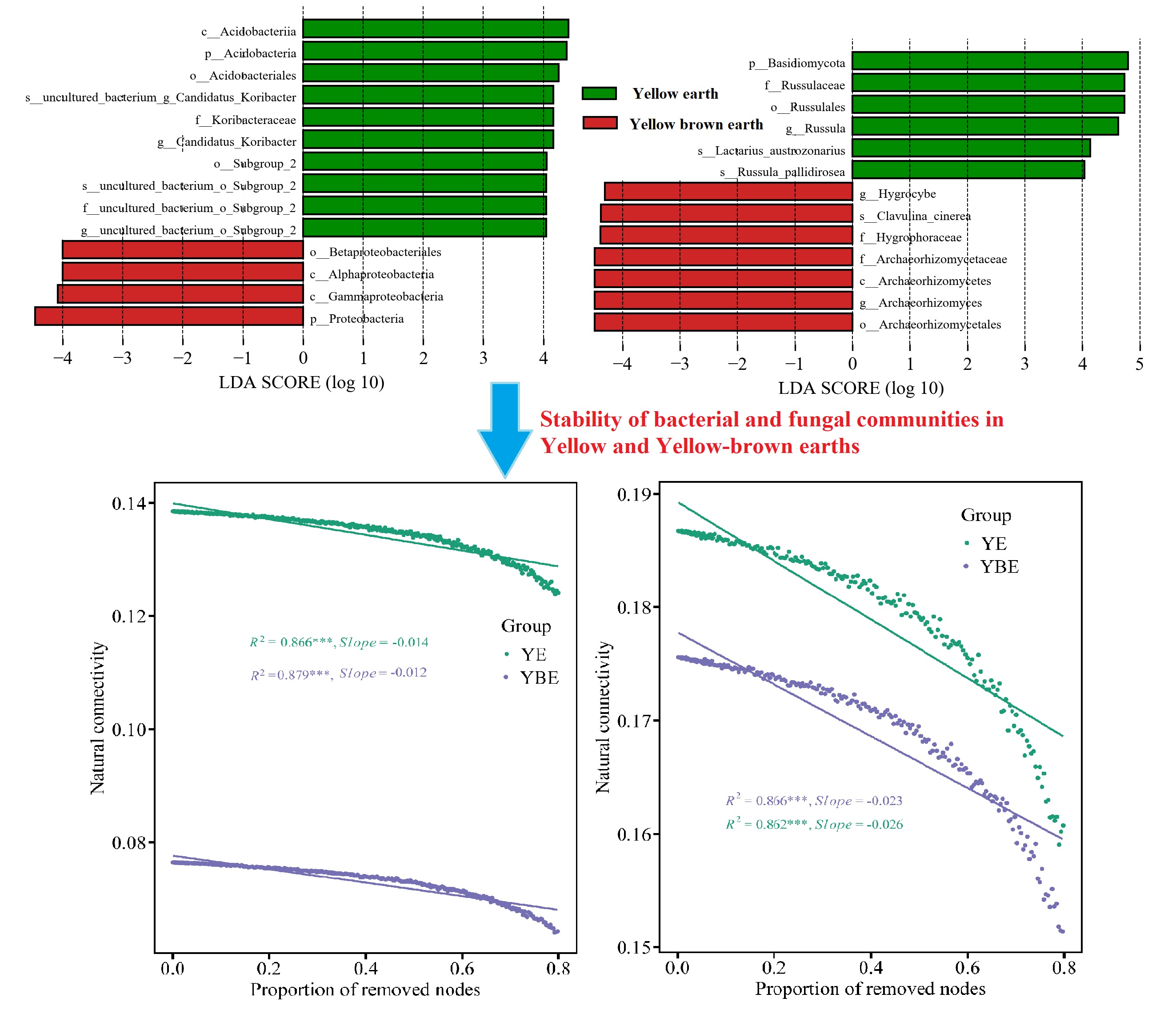 Although several studies have enhanced the understanding to Fanjing Mountain (Guizhou province, southwest China) from soil physiochemical parameters, stoichiometric, and endangered plants, however, there are rarely investigated to the differences in microbial communities in Fanjing Mountain. Therefore, this study mainly exhibits the difference of microbial community in the two typical soils (yellow earth and yellow-brown earth) in Fanjing Mountain as well as involves physicochemical parameters, microbial network structure and functional gene. Except for available phosphorus, cobalt and potassium, there are no significant differences between most physicochemical parameters in yellow earth and yellow-brown earth. Linear discriminant analysis effect size confirms that there are the significant differences at various levels of bacterial and fungal communities in the two typical soils, with 14 and 13 differential indicator species, respectively. Community similarity, mantel and redundancy analysis also demonstrates that pH is an important factor affecting bacterial and fungus communities in the two typical soils. Co-occurrence network of bacteria and fungus exhibits that the synergistic effect between microbial community is higher than the competitive effect. Functional gene expressions, including hydrocarbon_degradation, intracellular parasites, methylotrophy, methanotrophy, nitrogen_fixation, fermentation, in yellow earth are higher than of in yellow-brown earth. The proportion of symbiotoph and saprotroph dominates in the yellow earth in yellow-brown earth, respectively. Our results suggest that although there are merely the few differences between physicochemical parameters, the microbial community and functional gene vary found in the yellow earth and yellow-brown earth) in Fanjing Mountain via these discrepancies, which maybe caused by the discrepancy in pH in soil. Our study firstly emphasis the typical soil microbial community characteristics of the Fanjing Mountain forest ecosystem, providing key soil science basis for the precise protection and adaptive management of forest ecosystems in the future.